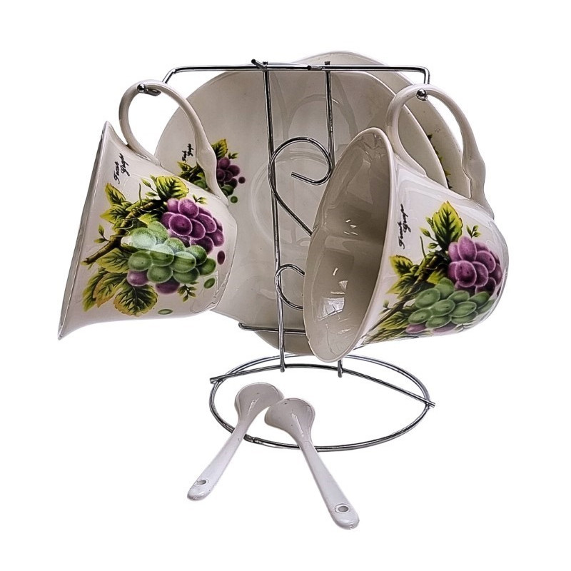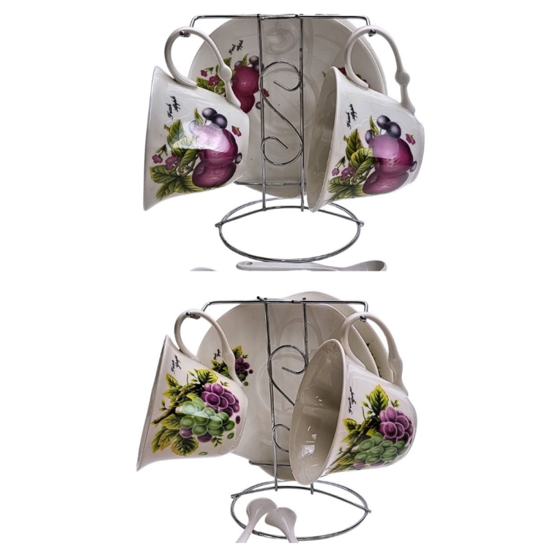 Puodelis su lėkštute ir šaukšteliais 2 asmenims. Puodelio aukštis- 6cm. 2 modeliai.