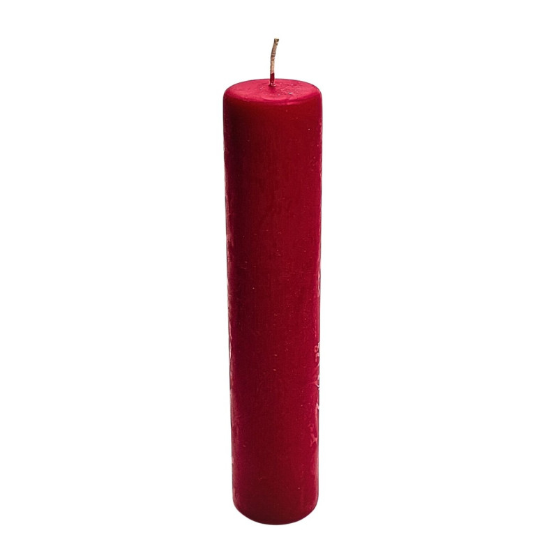 Žvakė cilindro formos, juostelė apačia raižyta, sidabrinės spalvos. Matmenys: D7cm, H9cm.