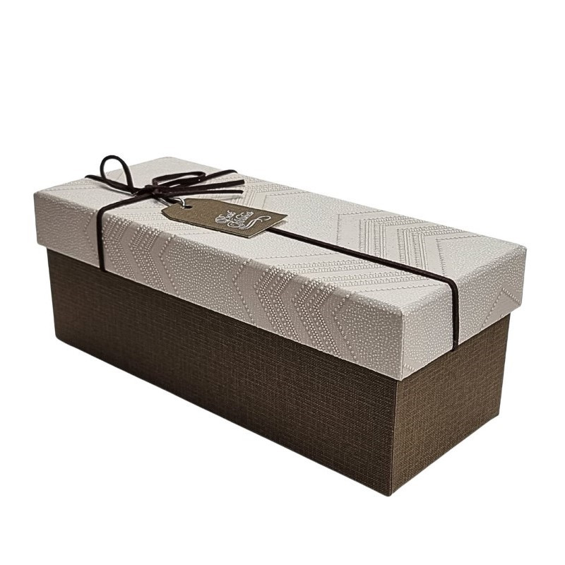Dėžutė dovanoms popierinė raštas iškilus raištelis. 24*10 H9 cm