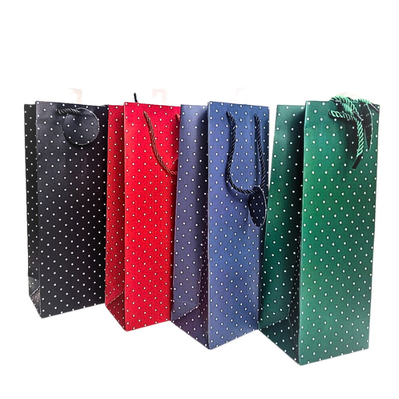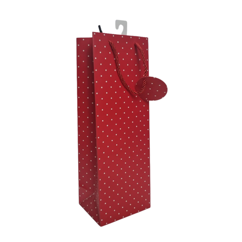 Maišelis buteliui, vienspalvis, 3 spalvos, tvirtas popierius. Matmenys: 36*12*9cm.