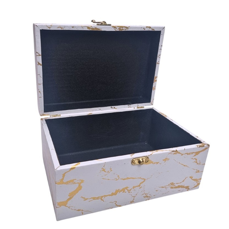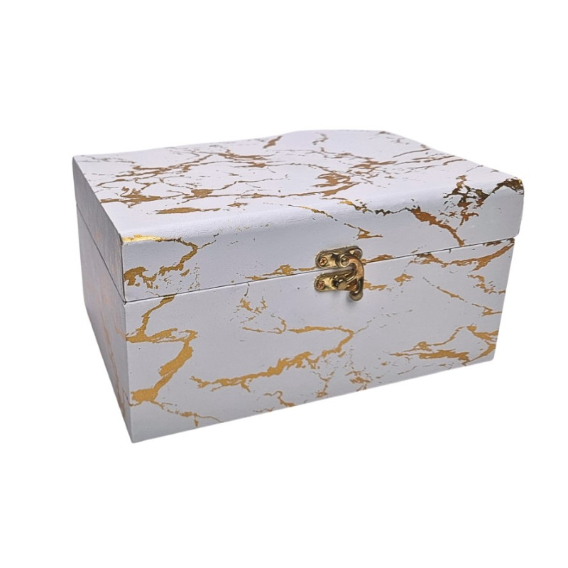 Medinė dėžutė MDF. Marmuro rašto. Aukso ir baltos spalvos. 24x16x12 cm.