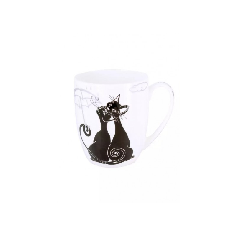 Porcelianinis puodelis Carmani, iš kolekcijos "Crazy cats", juodos katės, skėčiai. Matmenys: puodelio skersmuo - 8.5cm, aukštis - 10cm, talpa - 300ml.