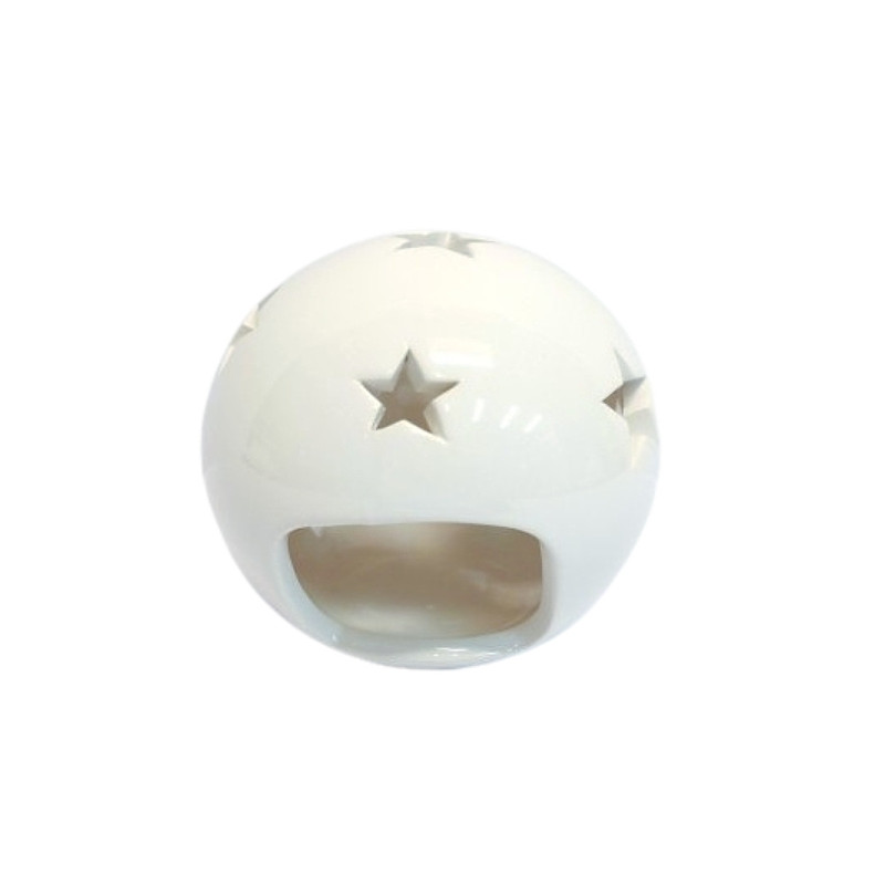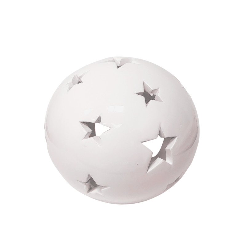 Keramikinė žvakidė burbulas, žvaigždės, balta. Skersmuo 12cm, aukštis 11cm.