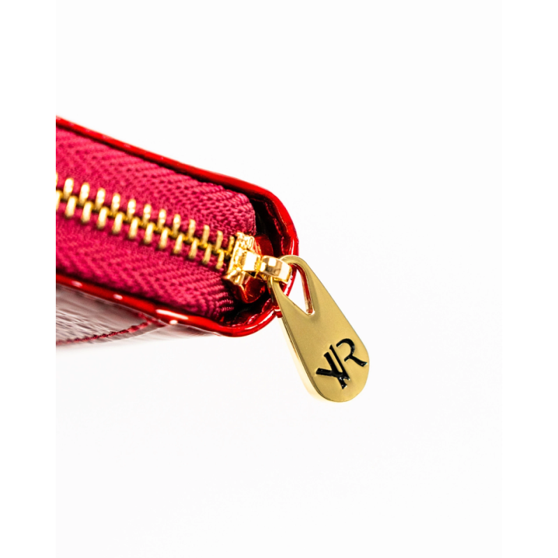 Moteriška, lakuota piniginė , pagaminta iš natūralios odos su RFID apsauga. Raudonos spalvos.