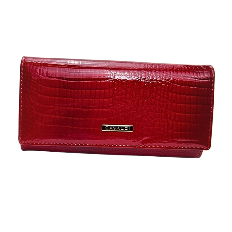 • Klasikinė raudona didelė moteriška piniginė, pasiūta iš lakuotos odos. Šis modelis pasižymi erdviu vidumi tiek gryniesiems pinigams, tiek kortelėms – 10 skyrių. Papildomame užtrauktuku užsegamame skyriuje taip pat galite laikyti savo automobilio registracijos liudijimą. Supakuota gamintojo dėžutėje.