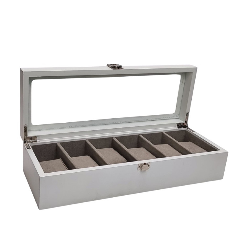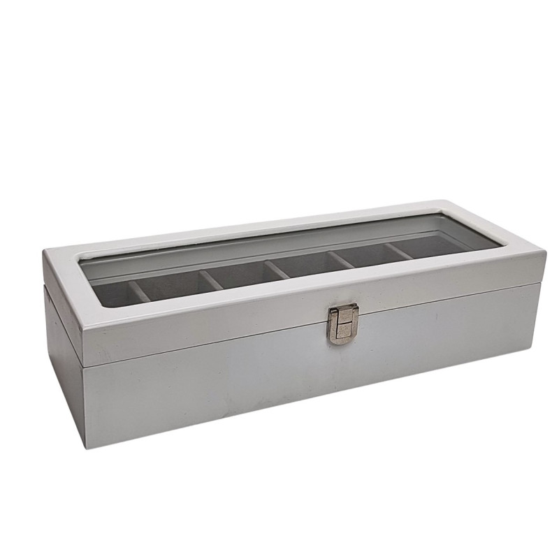 Dėžutė papuošalams, viršus stiklinis, baltos spalvos. 33*12 cm. Aukštis- 8cm.