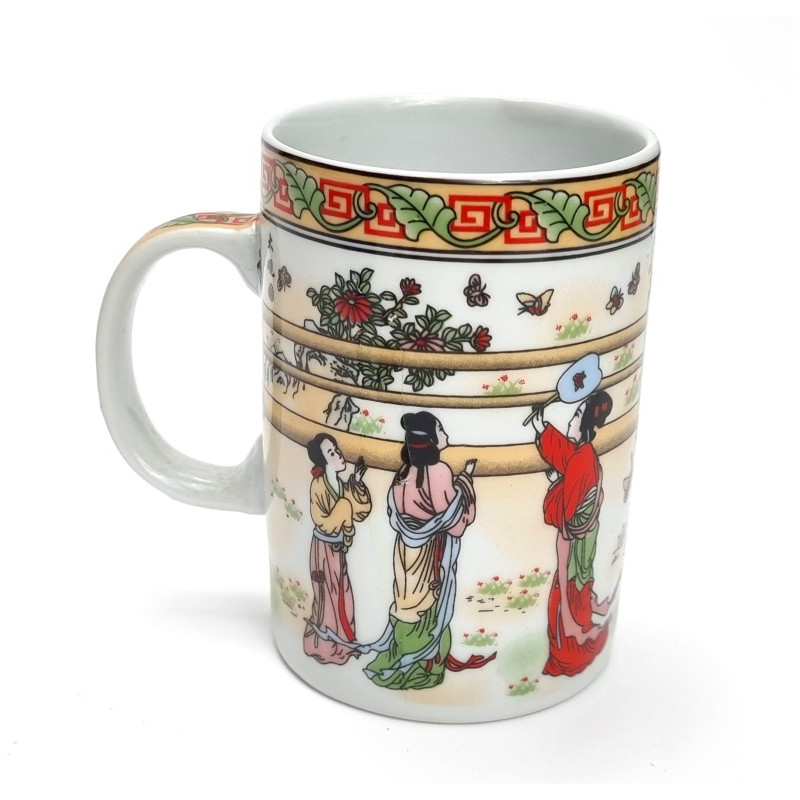 Porcelianinis puodelis Veroni Palma 719899-2. Palmių lapai. Matmenys: 340ml talpos, puodelio viršaus diametras - 8cm, aukštis - 10.5cm.