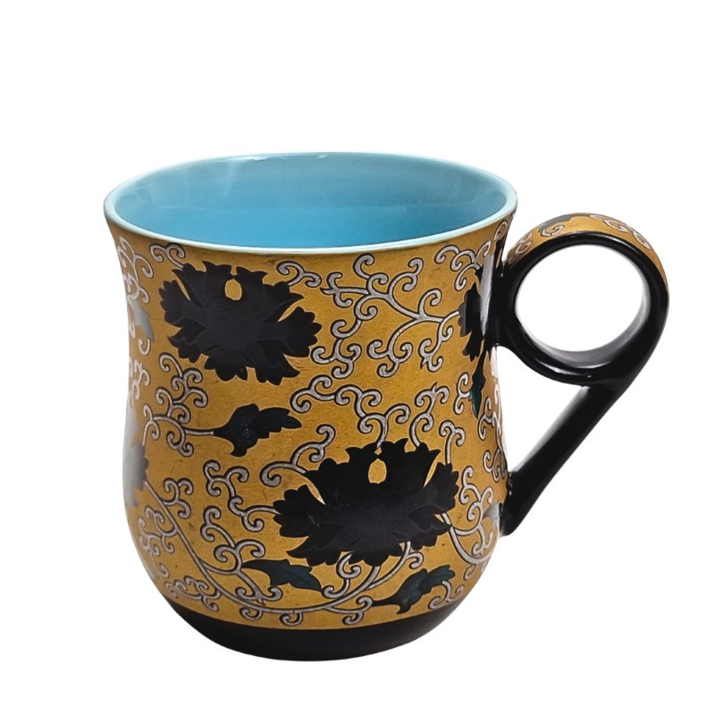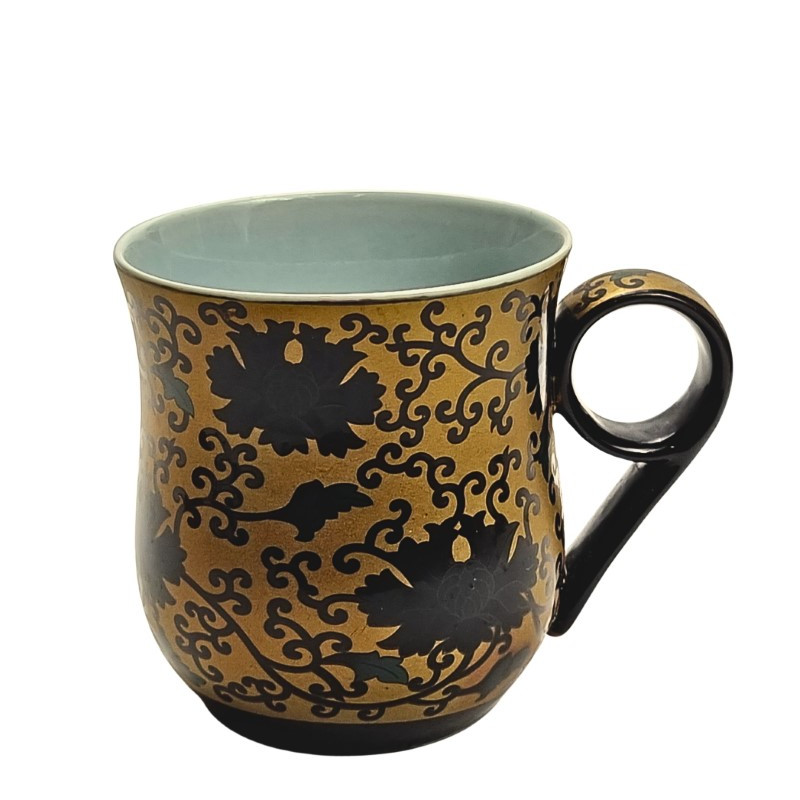 Porcelianinis puodelis AffekDesign Jungle, paauksuotas, baltos spalvos. Talpa 400ml. Plotis - 9.5cm Aukštis- 9.5cm.