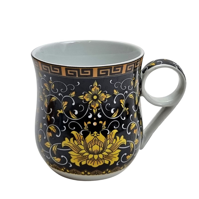 Porcelianinis puodelis Veroni Palma 719899-2. Palmių lapai. Matmenys: 340ml talpos, puodelio viršaus diametras - 8cm, aukštis - 10.5cm.
