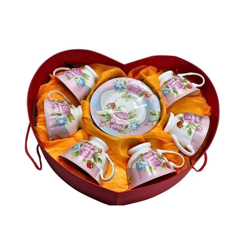 Rinkinys puodelis su lėkštute 6 asm, gėlės. Aukštis- 7cm.