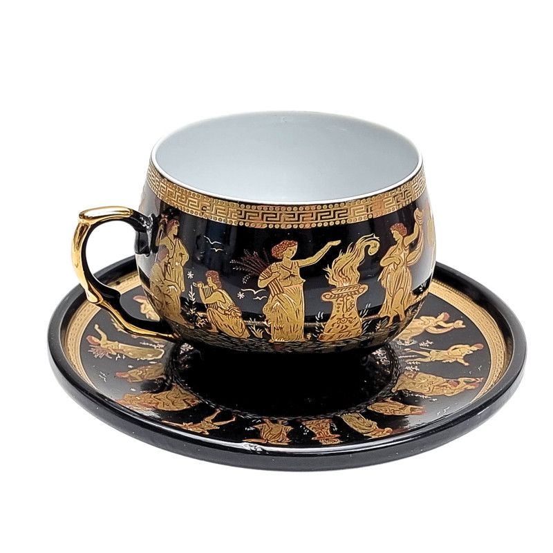 Rinkinys puodelis su lėkštute 6 asm auksiniu kraštu Aukštis- 6cm.