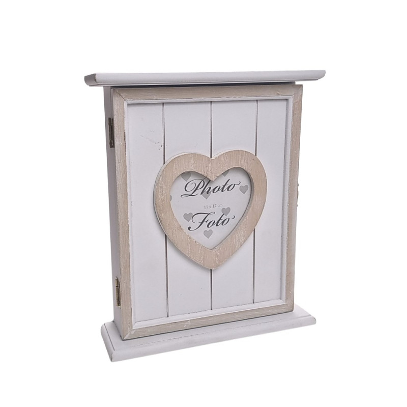 Medinė dėžutė raktams. (20x5,5x24 cm). Durelėse yra vieta nuotraukai (11x12 cm). Viduje 6 kabliukai raktams. Raktinė