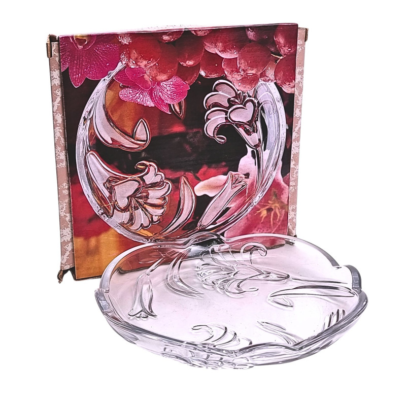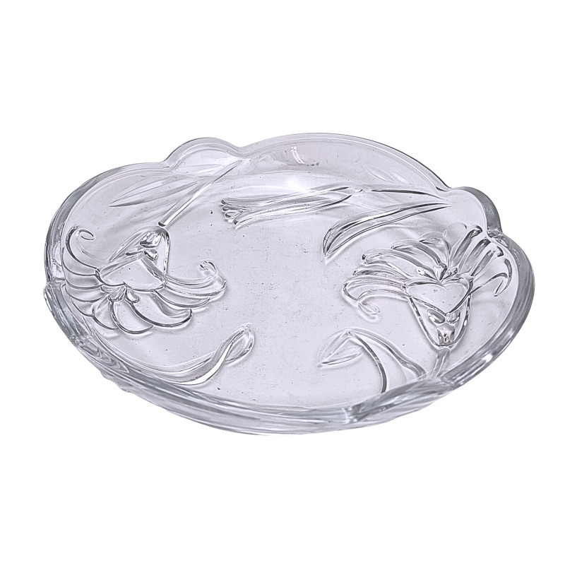 Stiklinė lėkštė. Matmenys: skersmuo - 18.5cm, aukštis - 3cm.