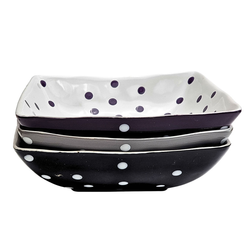 Dubuo, serviravimo indas su taškeliais. 1200ml. 22,5x22,5x6 cm. 3 spalvos.