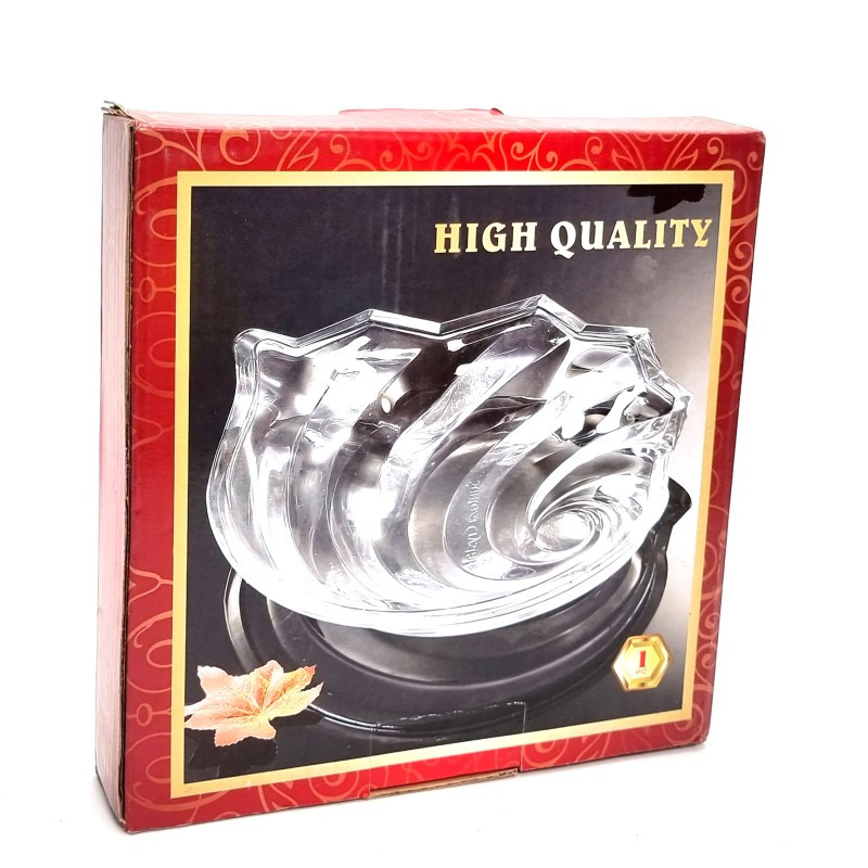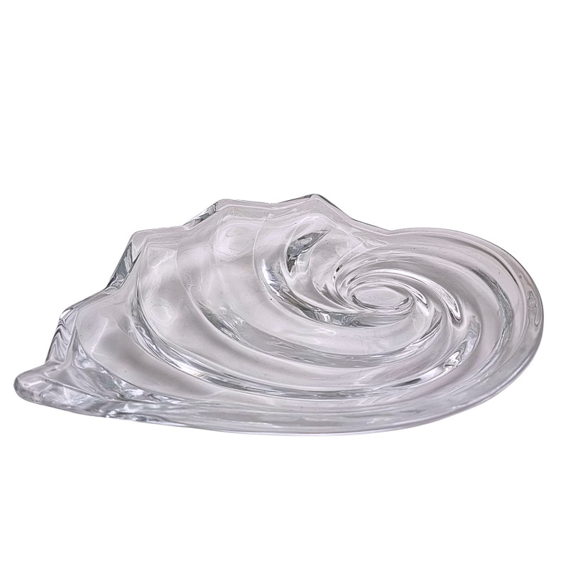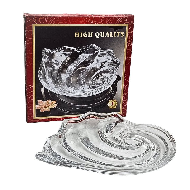 Stiklinė lėkštutė, padėklas, saldaininė, kriauklės formos, skaidri. Plotis - 20.5cm Ilgis - 17cm Aukštis -3cm.