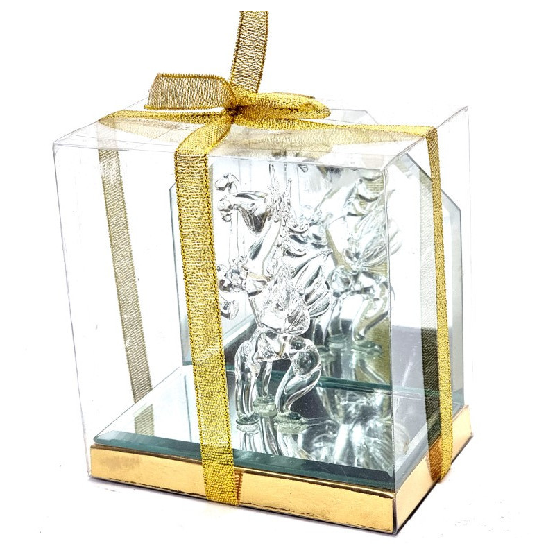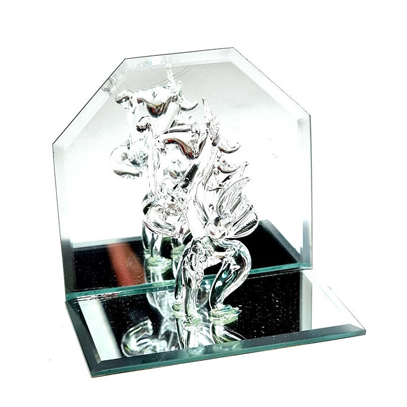 Stiklinė statulėlė - arklys su sparnais, vienaragis ant veidrodžio. Matmenys: 10*6cm, aukštis - 9cm.