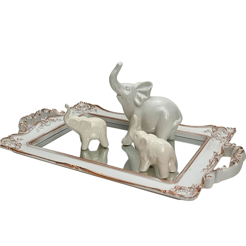 Keraminė lėkštutė papuošalams su drambliuku. Lėkštutė baltos spalvos, drambliukas aukso spalvos. Matmenys: skersmuo - 13cm, aukštis - 10cm.