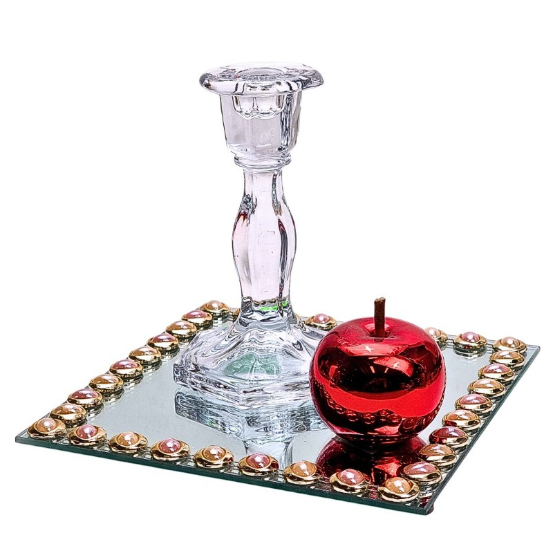 Metalinė žvakidė - statulėlė, kriaušės forma, dekoruota apvaliais kristaliukais, sidabro spalvos. Matmenys: skersmuo plačiausioje vietoje - 11cm, aukštis - 20cm.