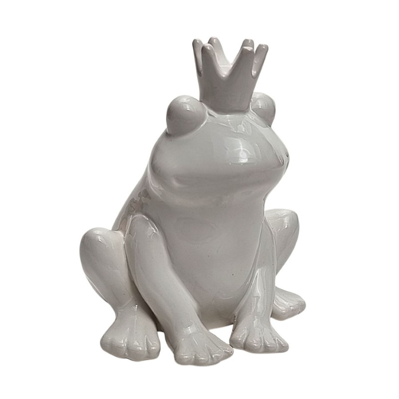 Keraminė statulėlė varlė su karūna. Baltos spalvos. 9*12cm, Aukštis- 14cm.