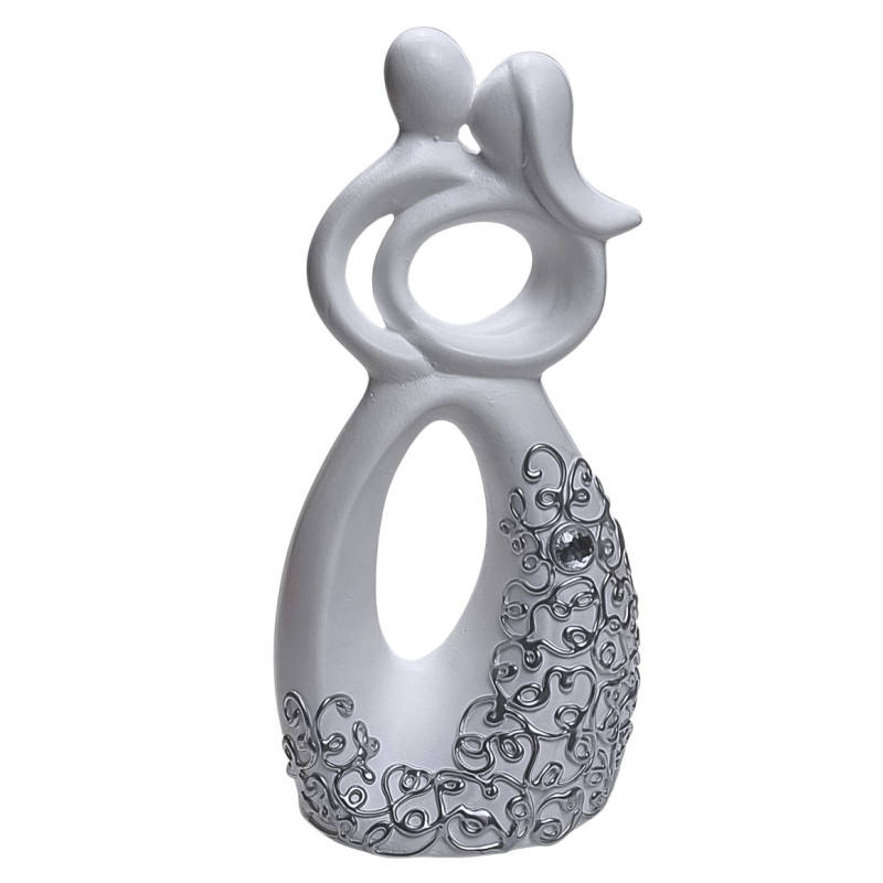 Keraminė statulėlė - pora, baltos spalvos, sidabriniai ornamentai, kristalas. Aukštis 28cm.