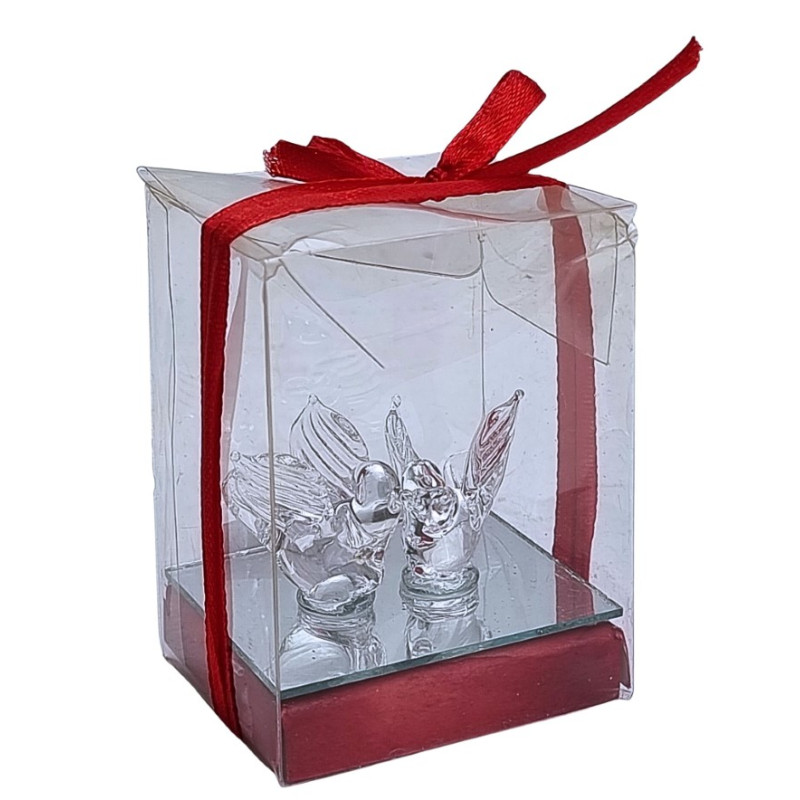 Stiklinė statulėlė - 2 paukščiai ant veidrodinio pagrindo. Matmenys: 5.5*4.5, aukštis - 3cm. PVC dėžutės matmenys:5.7*4.7*7.5cm.