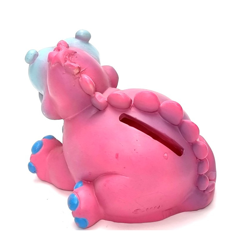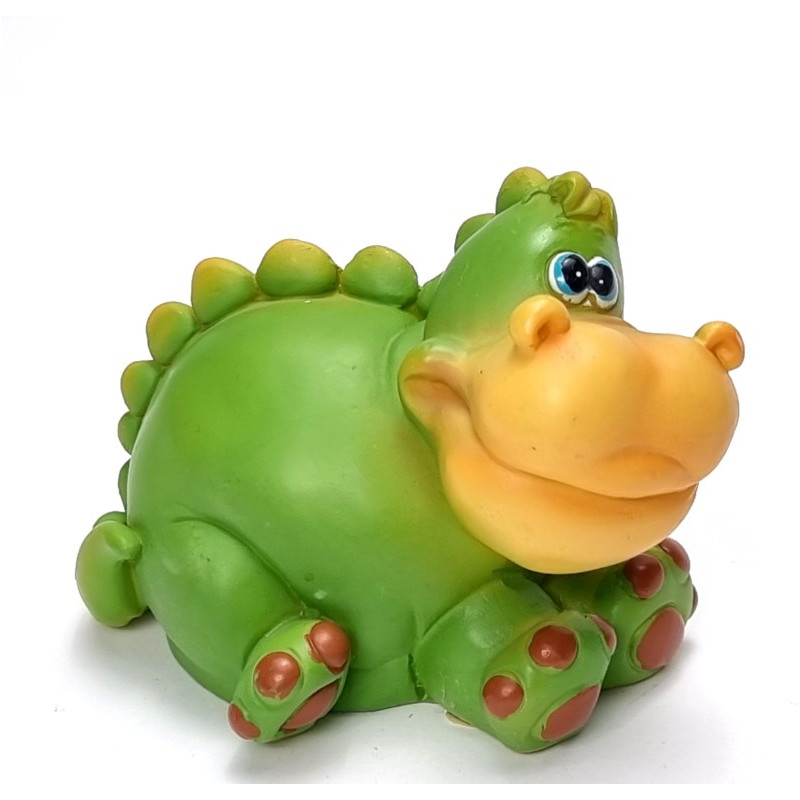 Statulėlė - taupyklė dinozauras, 2 spalvos, pagaminta iš polirezino. Matmenys: 11*9cm, aukštis - 9cm.