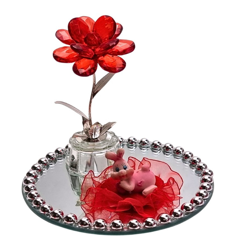 Stiklinė statulėlė - 2 gulbės ant širdelės formos pakilimo, šviečianti ir keičianti spalvas, raudonoje dėžutėje. Matmenys: 6.5*6cm, aukštis - 10cm. Dėžutės išmatavimai: 13.5*7.7*6.7cm.