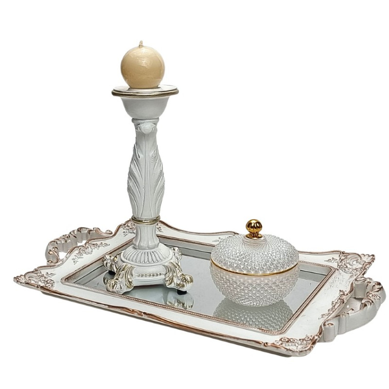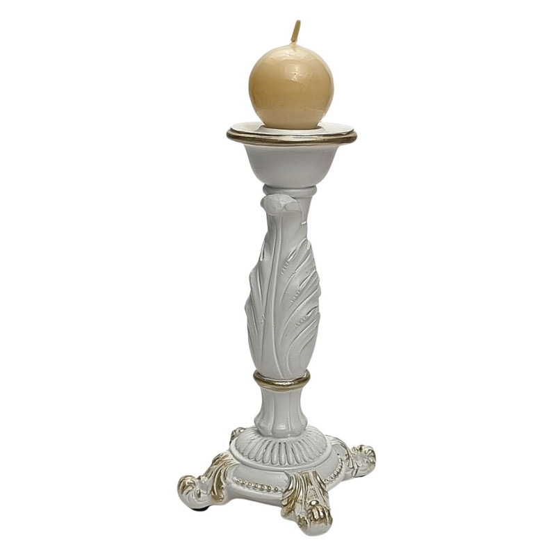 Žvakidė. Pagrindas plastikinis su 3 kojelėmis, sidabro spalvos, dėklas žvakei stiklinis, matinis. Supakuota PVC dėžutėje. Matmenys: apačios skersmuo - 6cm, viršaus skersmuo - 5.5cm, aukštis - 8.5cm.