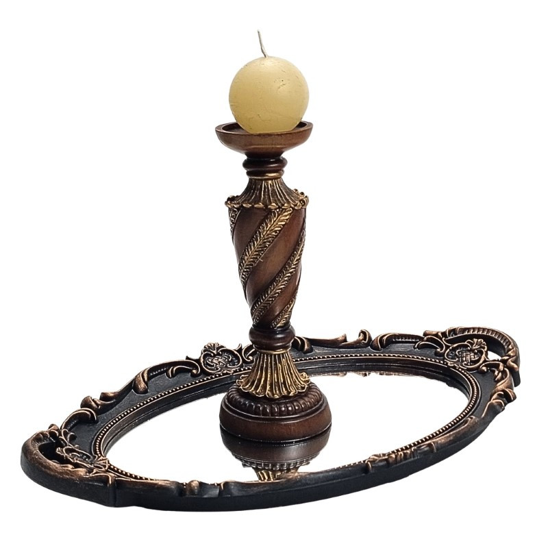 Žvakidė iš plastiko 1 žvakei. Sukta, rudos spalvos. Matmenys: skersmuo - 7.5cm, aukštis - 20.5cm.